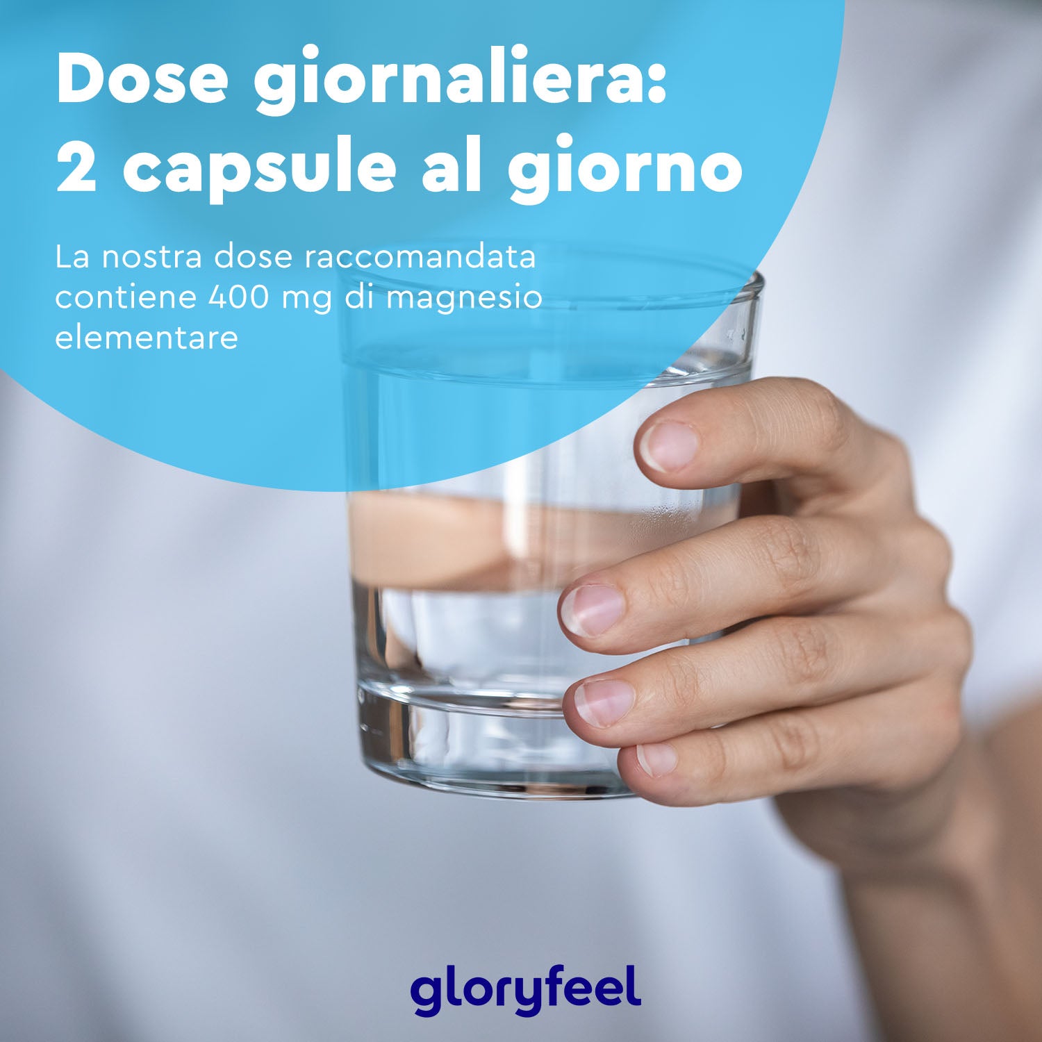 Le nostre capsule di complesso di magnesio forniscono ben 400 milligrammi di magnesio elementare di elevata purezza per dose giornaliera. Questo ti dà una carica di magnesio per tre mesi, con un eccellente rapporto qualità-prezzo e un dosaggio semplice.