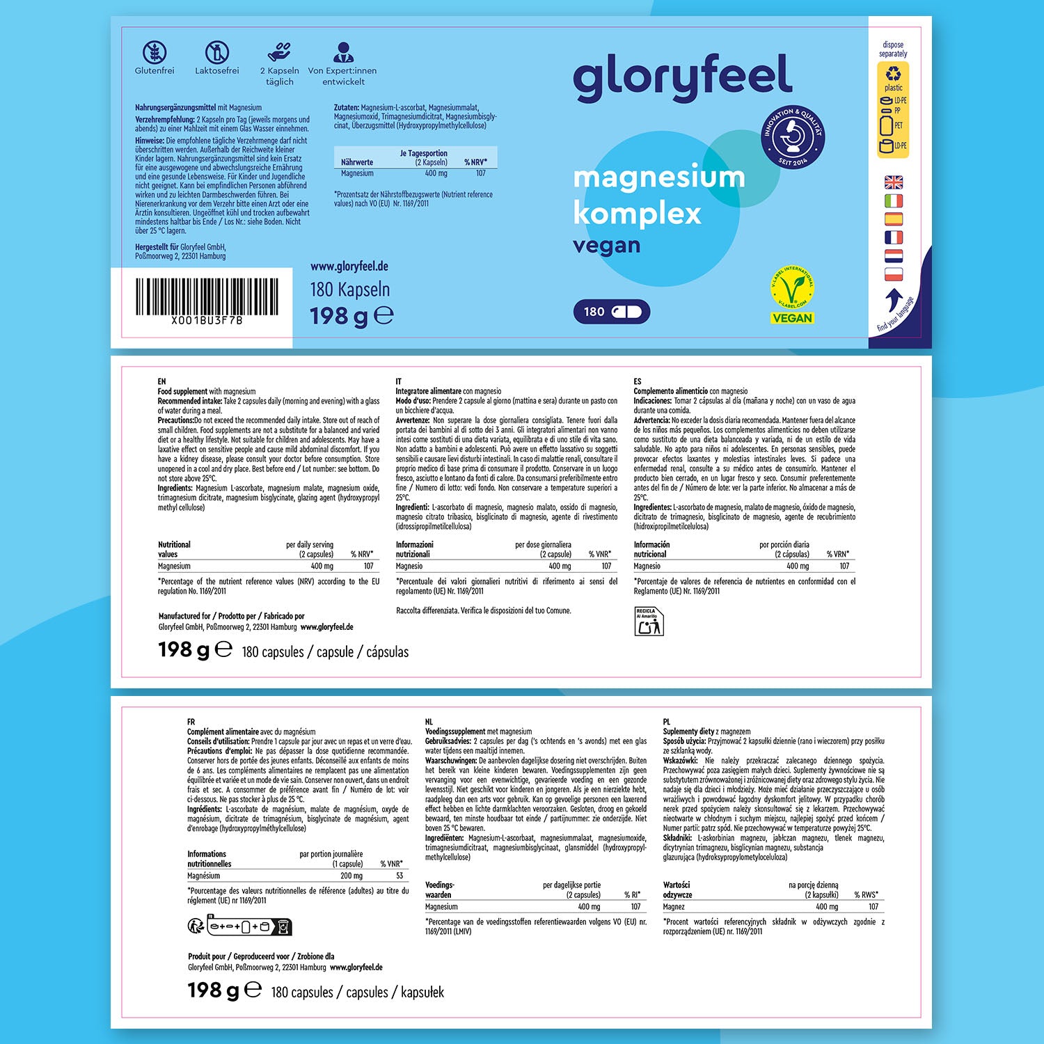Ecco altre informazioni interessanti! Grazie alla forma piacevolmente piccola e all'involucro elastico della capsula, il nostro integratore è particolarmente facile da deglutire. Mentre benefici di una biodisponibilità ottimale, il nostro complesso di magnesio è ben tollerato dal tuo organismo.