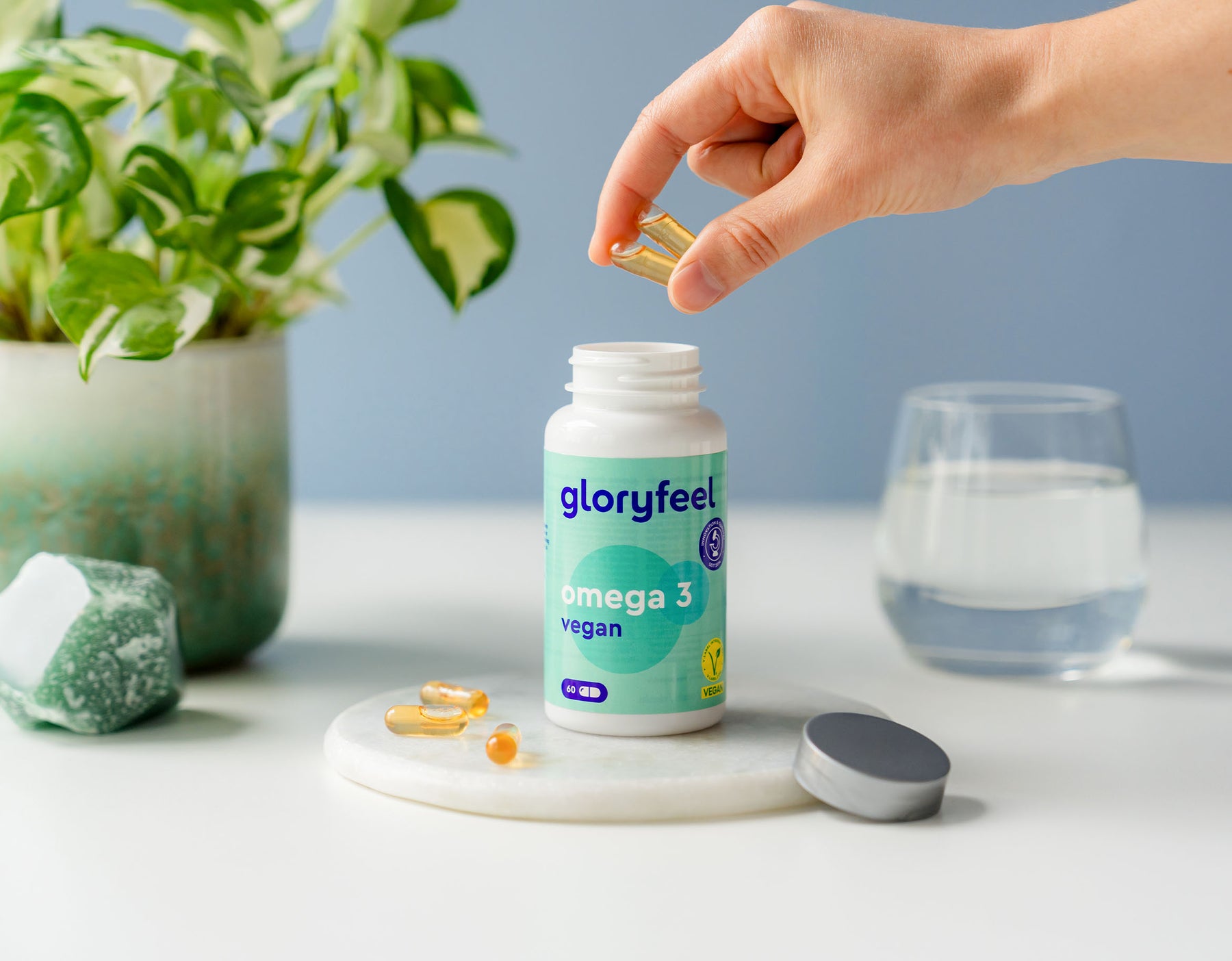 Stai cercando acidi grassi omega-3 in pura qualità vegana? Voilà! Le nostre capsule vegane di omega-3 in forma altamente concentrata ti convincono con un elevato contenuto dei due acidi grassi essenziali DHA ed EPA, compresa una biodisponibilità ottimale. Per un apporto di omega 3 al 100% vegetale!