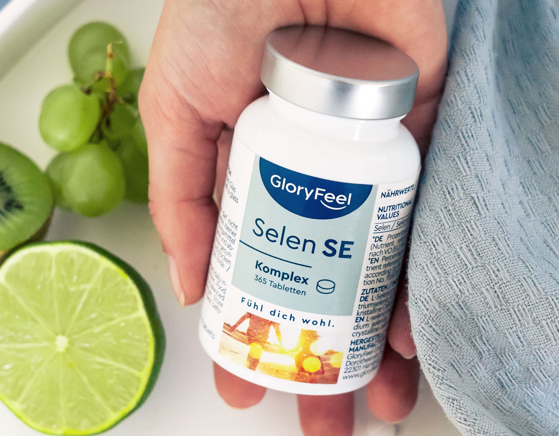 356 giorni di rifornimento completo per te: con 1 sola compressa di selenio, piccola e facile da ingerire, al giorno, rifornisci il tuo corpo di 100 µg di selenio e assicuri il tuo fabbisogno in modo semplice. Dopo tutto, questo oligoelemento vitale svolge un ruolo indispensabile per il tuo stile di vita sano e per la tua routine di bellezza quotidiana.